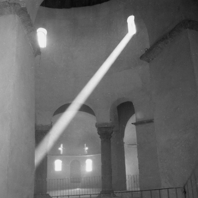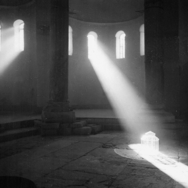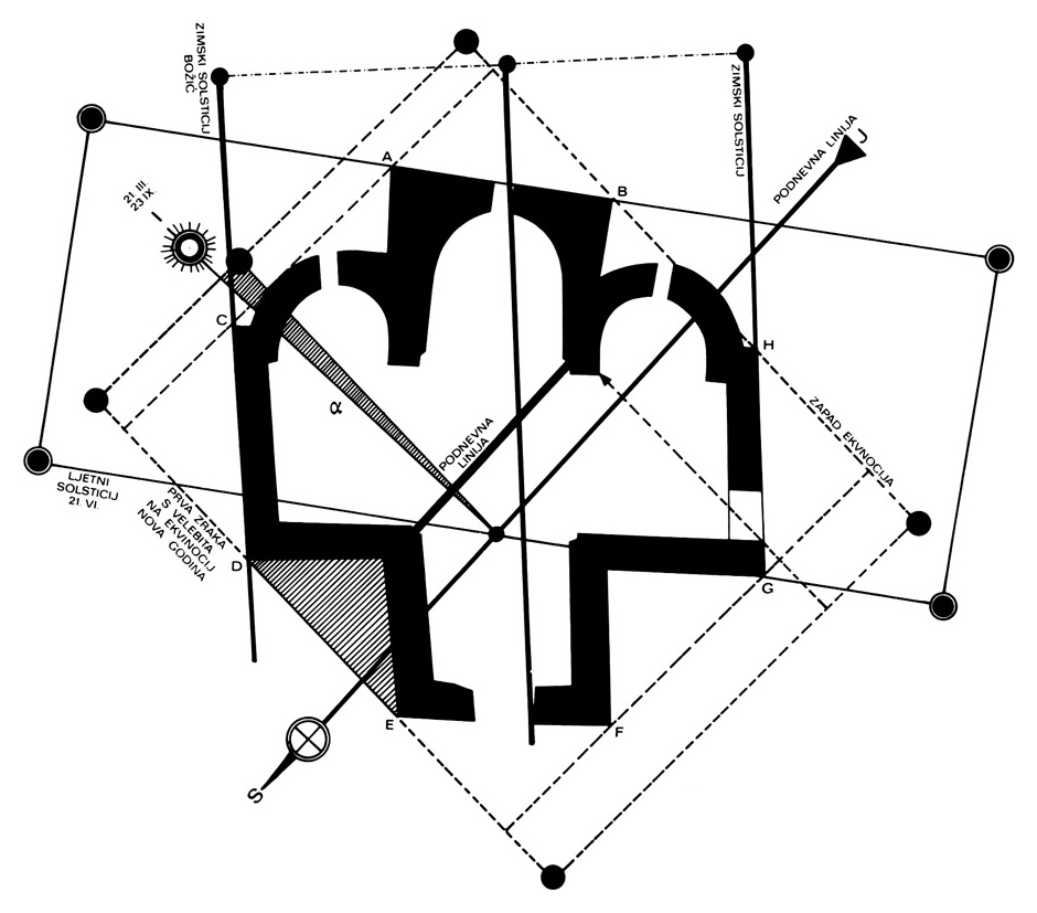 Sv. Augustin kaže da nas pri pogledu na zemlju i nebo može zadovoljiti samo ljepota, u ljepoti forma, u formi proporcija, a u proporciji broj. Tako se duh iz pojavnoga svijeta uzdiže na razinu božanskog reda. Taj uspon prema broju Pejaković shvaća kao nalog svjetlosti. »Broj iz svjetlosti.« Pogled se uzdiže kao što se svjetlost spušta, »svjetlost je najveća moguća slutnja čiste forme«, govorilo se u Platonovu tragu. Ali Platonova nas smjerna misao ujedno opominje da se od Sunca moramo zaštititi pogledom na drugu stranu. Ondje sjene naoko modeliraju predmete, ali uistinu moduliraju svjetlost. Jer, kao i muzika, i ovo je znanost o dobroj modulaciji, scientia bene modulandi. Modulacija je sjena bez opsjene, ono što ostaje kad se tami oduzme privid. Sjene koje će njihov najbolji suvremeni poznavalac Michael Baxandall nazvati »rupama u svjetlu«,11 za Pejakovića su spacijalni rezovi, brojevi sunčanog brojčanika. Pejaković nas u svojim knjigama o arhitekturi vodi kroz gnomoniku, nauk o sunčanoj uri, nazvan prema gnomonu, sjenokazu, okomitom štapu koji po nalogu Sunca mjeri Zemlju. Ono što je za muzičara Pitagoru bio monokord, za Pejakovića je gnomon: instrument evokacije. I vertikala u doslovnom i prenesenom smislu. Iz povijesti arhitekture znamo da se gradilo i po monokordu i po gnomonu, znamo da se svjetlost provjeravala zvukom a zvuk svjetlošću. Pod Suncem koje zvuči na stari način »i triglif pjeva, pjeva stup i kam, / čak mislim da i čitav pjeva hram«, kaže Goethe.12 Wittkowerova knjiga o muzičkim proporcijama renesansne arhitekture (1949), napisana na ramenima tradicije Albertija i Palladija ali i muzičkih teoretičara Gafurija i Zarlina, suoblikovala je i Pejakovićeve stavove.13 Ali Pejaković sklad ne potvrđuje samo kvadratom i krugom, on sklad provocira nepravilnostima. Kao da je nered tek privid koji čeka Pejakovićev uvid. »Sv. Križ u Ninu prava je zbirka negativnih predznaka. Crkvica je nečist građevni tip. Na njoj baš ništa nije pravilno. Ništa nije pravokutno što bi imalo biti pravokutno. Kružno nije kružno, a sva su zaobljenja iskrivljena bez vidljivih razloga. Ako crkvica u tlocrtu ima oblik križa, svaki mu je krak drugačiji. Tko će opravdati besmislene kosine stijena? Apside su raznih veličina, položaja i oblika. Svaka je još i posebice deformirana. Os je crkvice slomljena. Ulazni krak, sredina i glavna apsida usmjereni su po vlastitim smjerovima. Prozori su izmaknuti u očit nered. Tloris kupole nije ni kružnica ni elipsa.«14 – Pejakovićev je opis točan negativ njegove sjajne analize, tama izrezana iz svjetlosti – i fina ironija opisa povjesničara umjetnosti koji s nepravilnostima nisu umjeli izići na kraj. Zaboravili su da je harmonija sklad u neskladu, da je nered na zemlji odraz reda na nebu. »Razlike su samo inverzne sličnosti«, kaže Novalis. Crkvica sv. Križa u Ninu zapravo je sofisticirani gnomon koji na zemlji crta sunčev put. Sve su negativnosti legitimirane odnosom Sunca i Zemlje. Građevina je modulacija svjetlosti. Njezina je analiza ikonografija kozmosa.